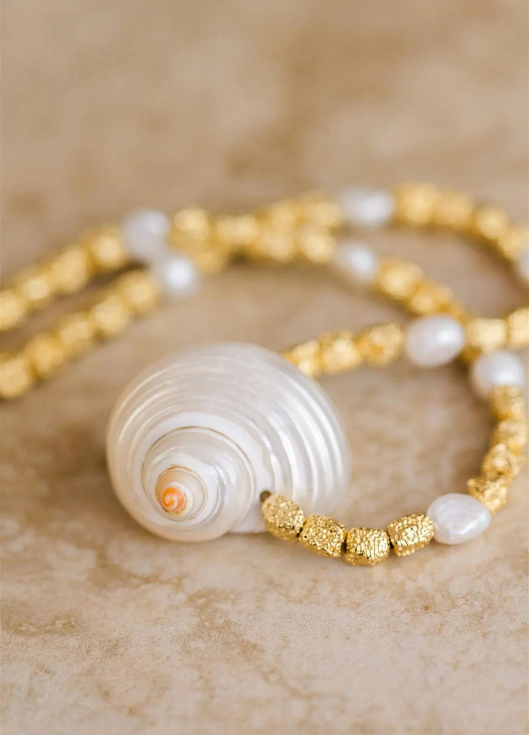 Crafted from luxurious gold vermeil, this stunning necklace features a conch shell pendant that will transport you to the seaside.